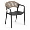 Η πολυθρόνα-καρέκλα Clelia συνδυάζει σύγχρονο σχεδιασμό και υψηλή ανθεκτικότητα, αποτελώντας ιδανική επιλογή για εσωτερικούς και εξωτερικούς χώρους. Διαθέτει ανθεκτικό μαύρο σκελετό από πολυπροπυλένιο (PP) και εντυπωσιακή πλάτη από μπεζ PE Rattan, που προσδίδει φυσική αισθητική και κομψό χαρακτήρα.
