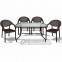 Σετ τραπεζι με 4 καρέκλες από πολυπροπυλένιο με λεπτομέρειες rattan, ένα συνθετικό υλικό με μία ιδιαίτερη τεχνική πλέξη. Διαθέτει μοντέρνο σχέδιο και μεγάλη αντοχή στις καιρικές συνθήκες λόγω της UV προστασίας που διαθέτει.